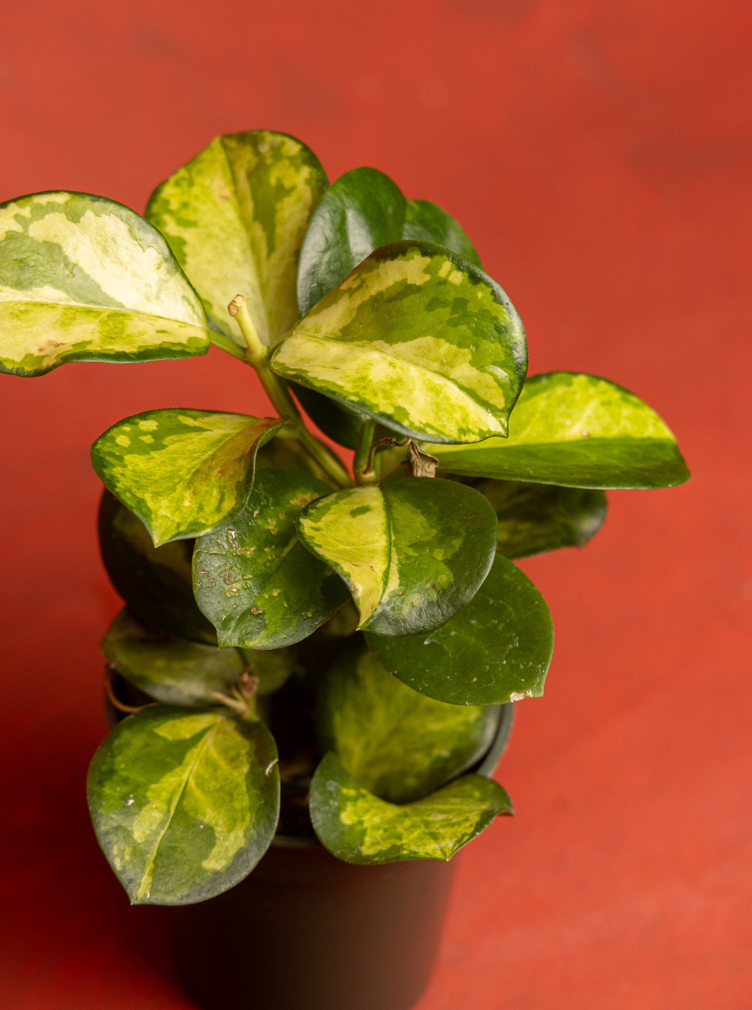 Softly blushed and slow to reveal herself, Hoya Lisa carries a gentle warmth that feels personal and intentional. Cream, green, and subtle pink tones blend across thick, waxy leaves, creating a color story that shifts with the light.