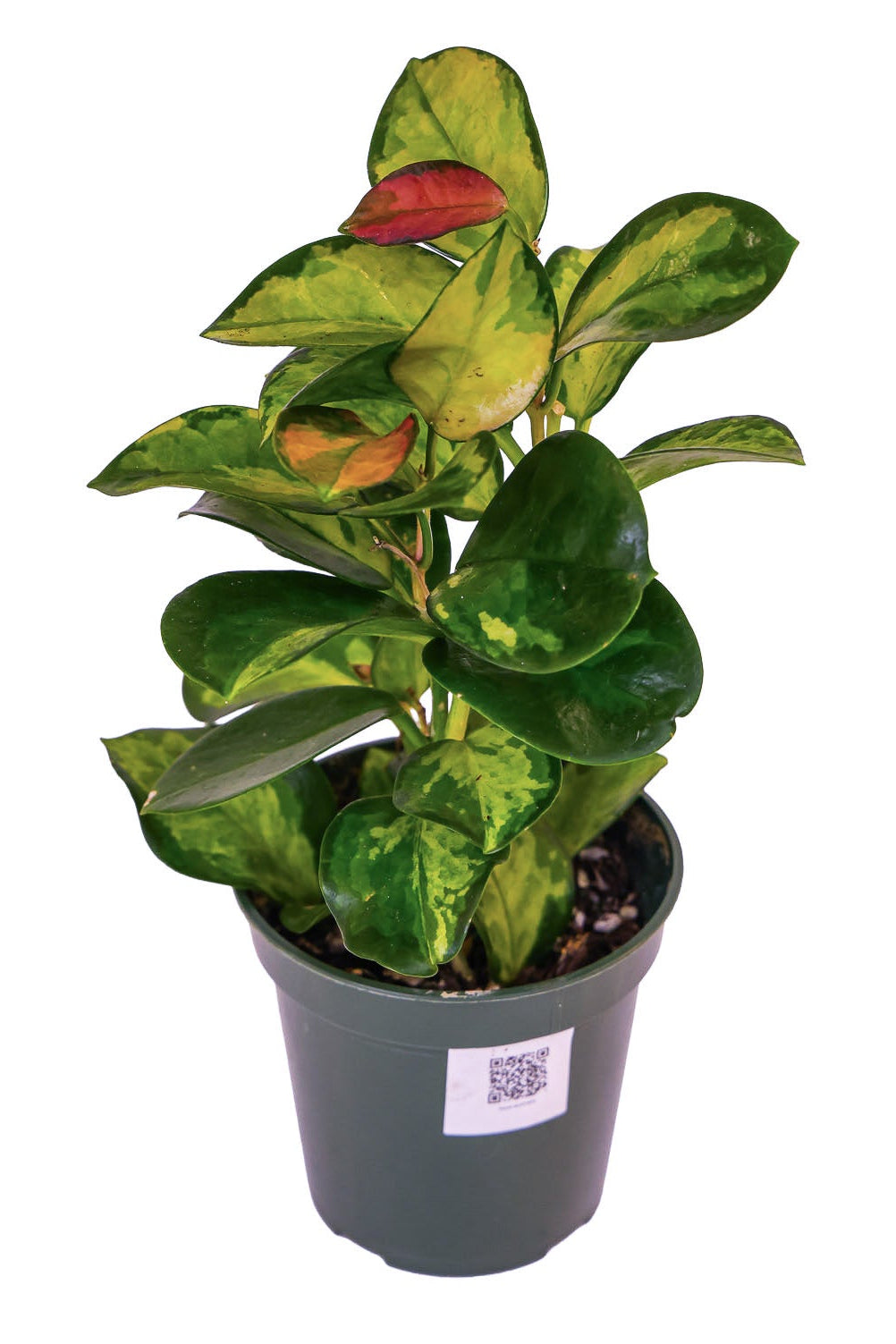 A stunning variegated trailing plant with creamy white, soft green, and blush tones. This 4” Hoya Australis ‘Lisa’ is easy-care and thrives in bright, indirect light, making it perfect for shelves, desks, and romantic interiors.